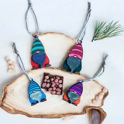 A set of four cheeky gnomes! These can be used as tree decorations or can be added to gifts,