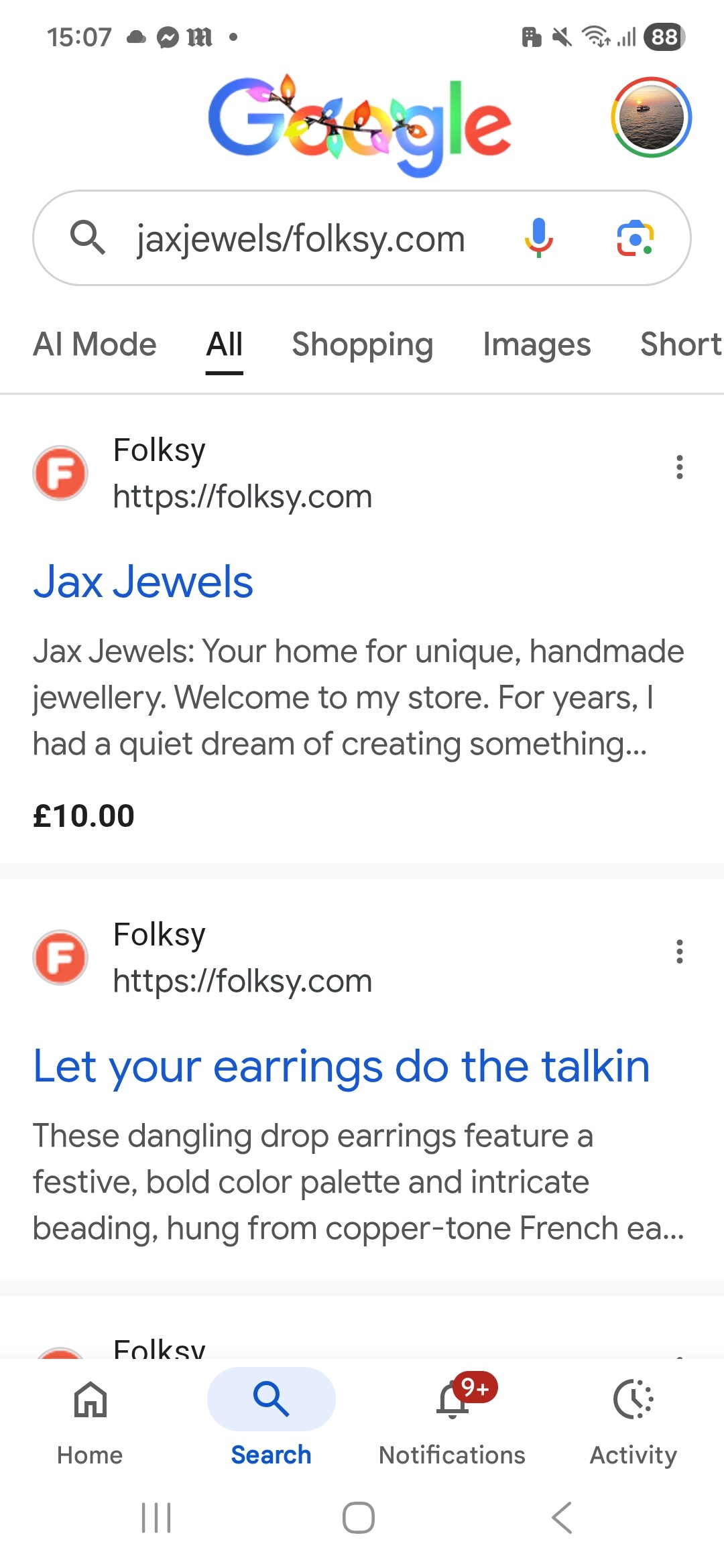 After looking and studying my shop link I understand it to be jaxjewels/folksy.com. That, im sure took me to my shop and the item. Now it seems to take me to the attached. I’ve also prefixed www jaxjewels/folksy.com