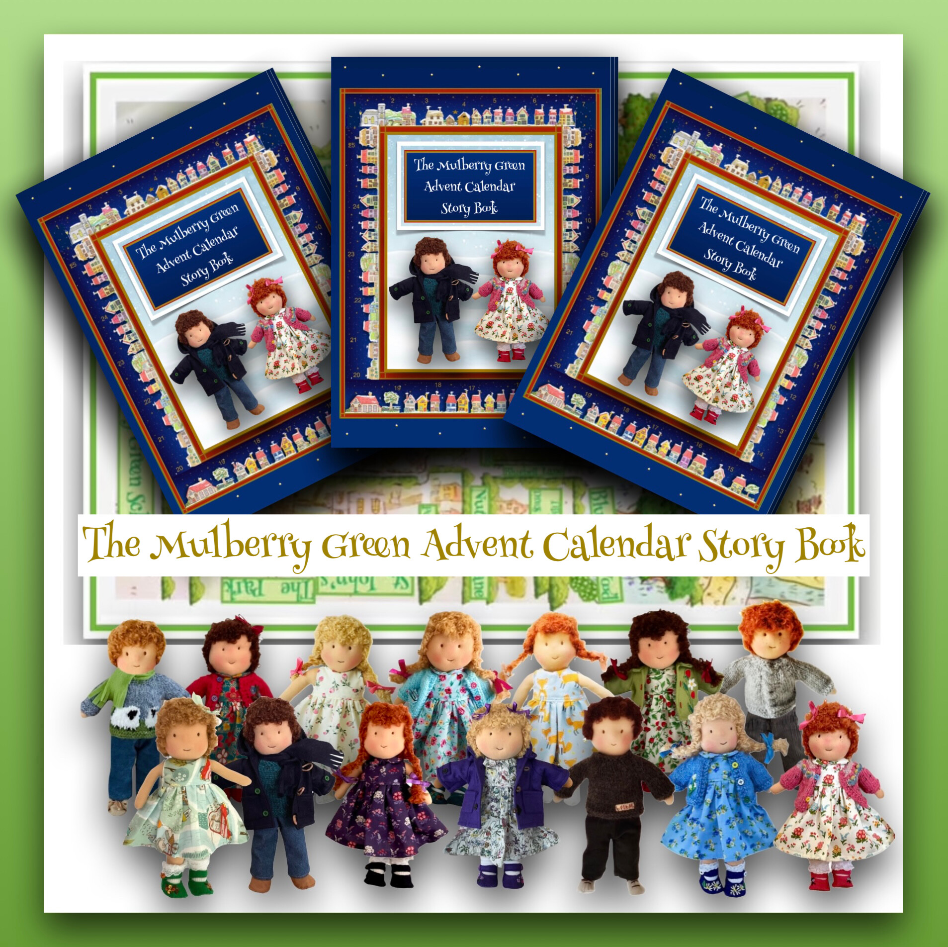 I make dolls, lovely clothes to fit them and write story books about their adventures. This year I’ve produced an Advent Calendar story book with a story for each day in the lead up to Christmas and the Nativity at the end.