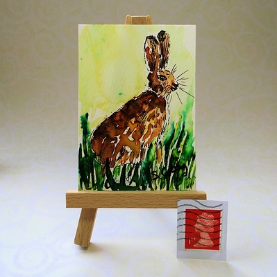 There’s a definite theme forming - ditch the stamp and bring in some more relevant props for sizing. I will also include a photo of just the painting as a supplementary, and I have a photo of my packaging as another supplementary, although that too needs updating and fitting in with the general style.