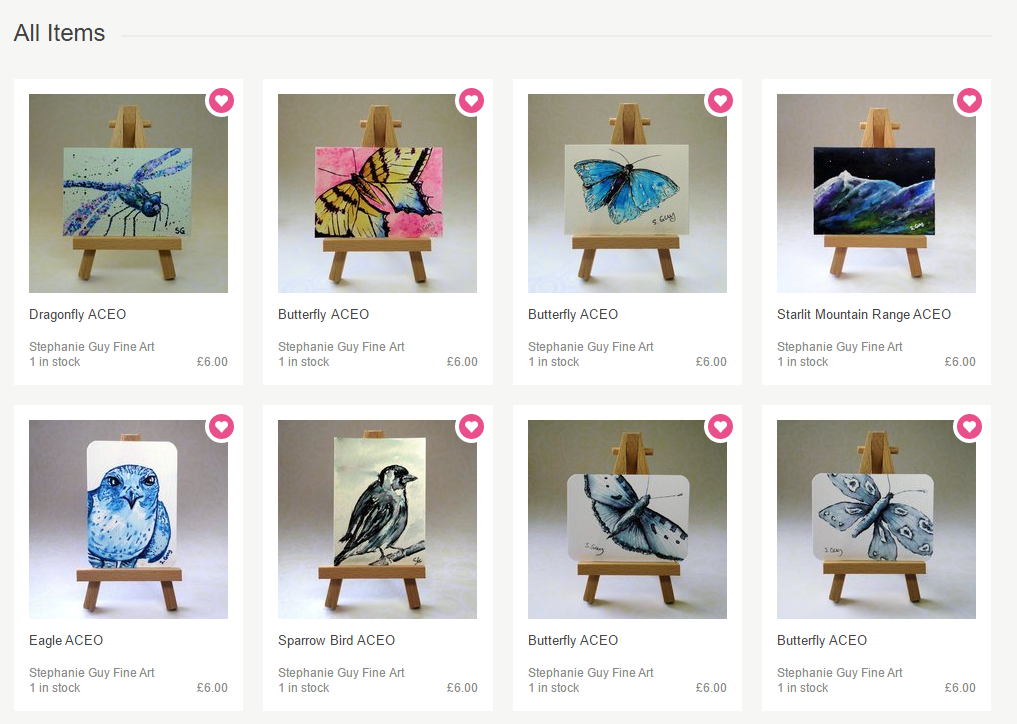 I’ve been stock taking (boo) and reviewing my photos this week. I’ve had a good hard look at my shop and I think I need to unify my photos. I’ve got this VERY wrong in the past so would be hugely grateful if you’d give me your opinion on these photos for my ACEO section.