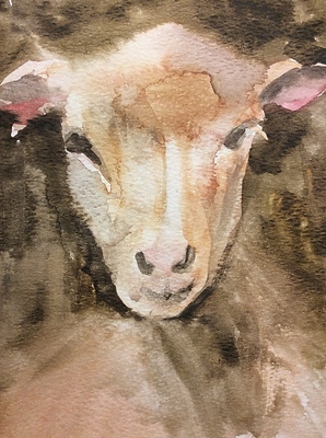 Had a little time on my hands on Saturday, waiting for another ewe to lamb so did a little watercolour of this new Mum and her baby girl …